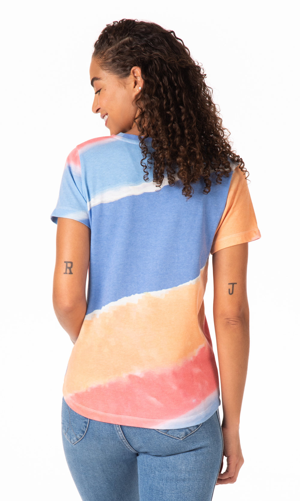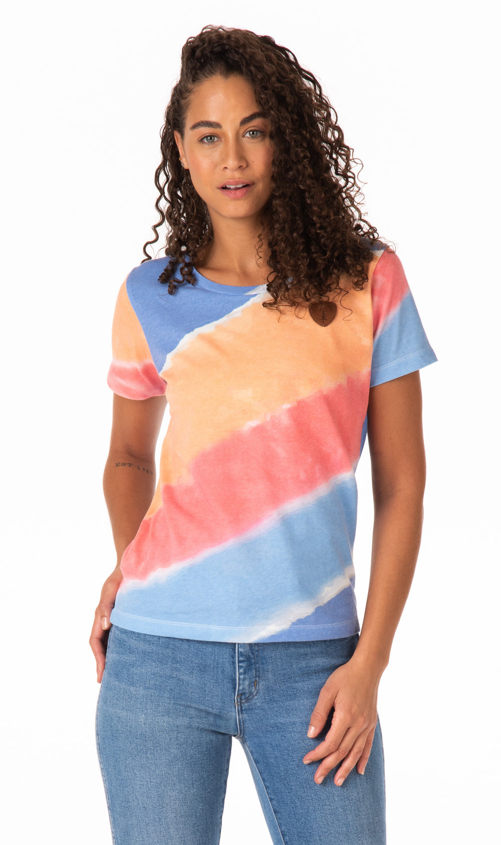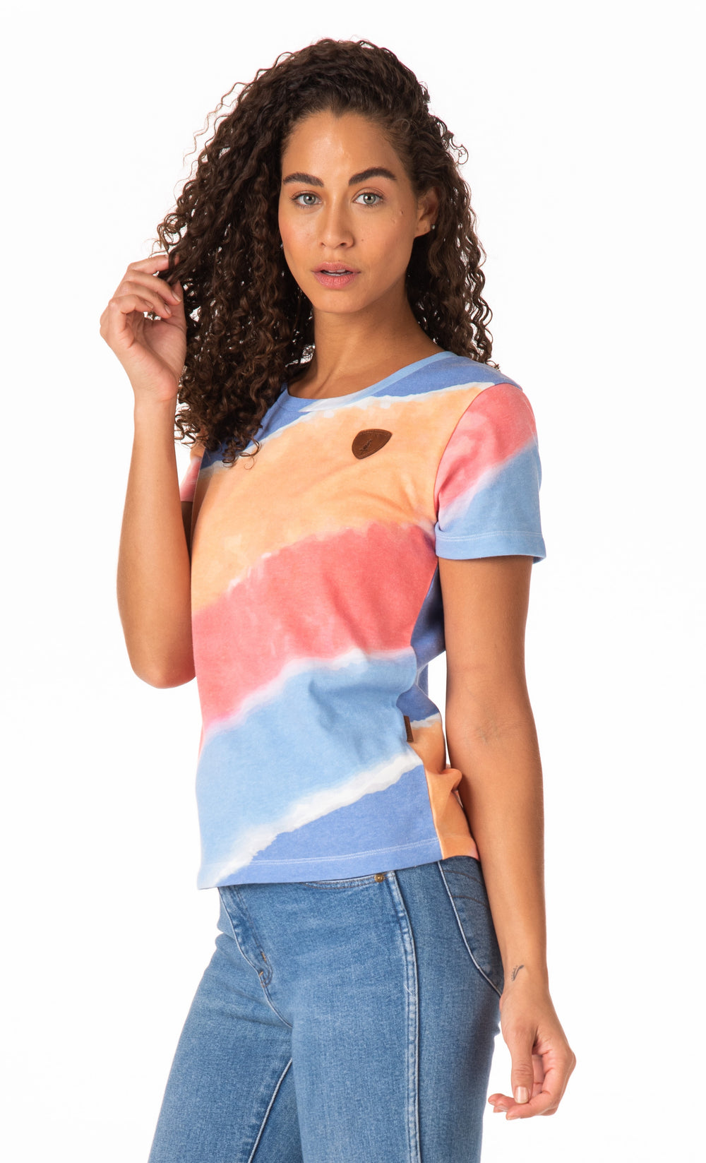 T-shirt en jersey pour femme en bleu fort/tournesol/argile saupoudrée
