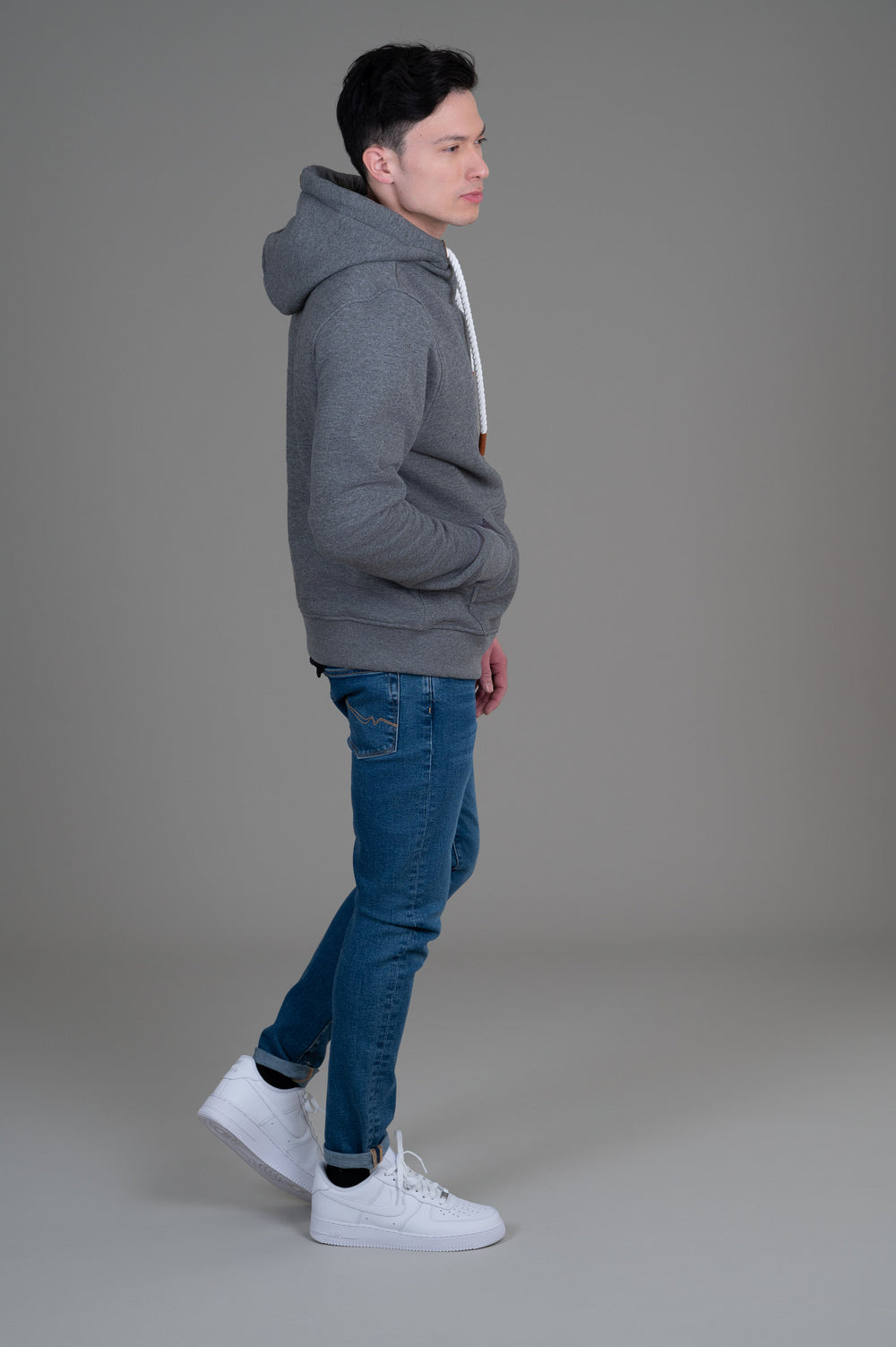 Pull à capuche en tissu éponge pour homme avec poche kangourou en gris chiné foncé