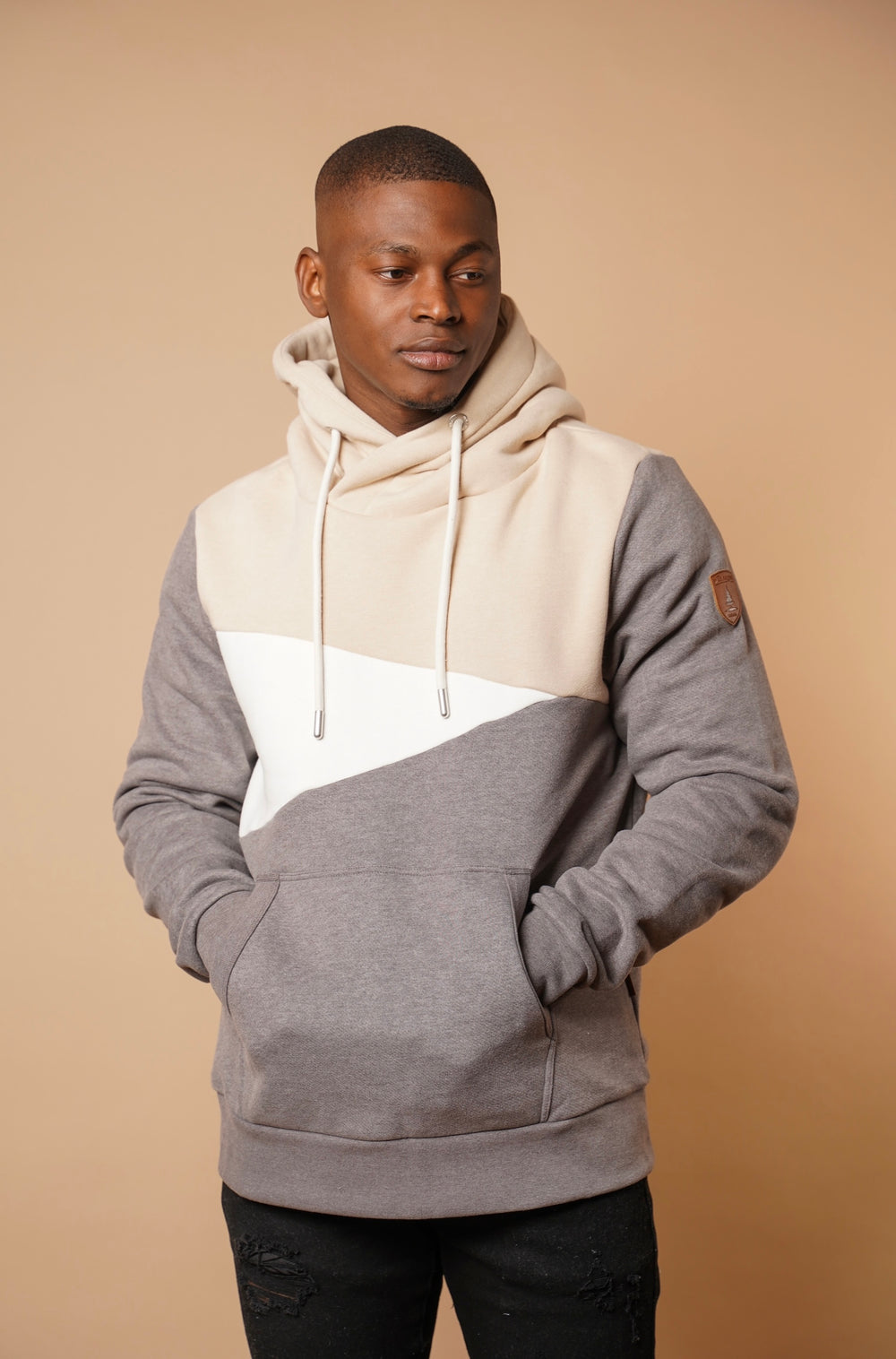 Sweat à capuche avec blocs de couleurs en Zig Zag pour homme en Ash Mix