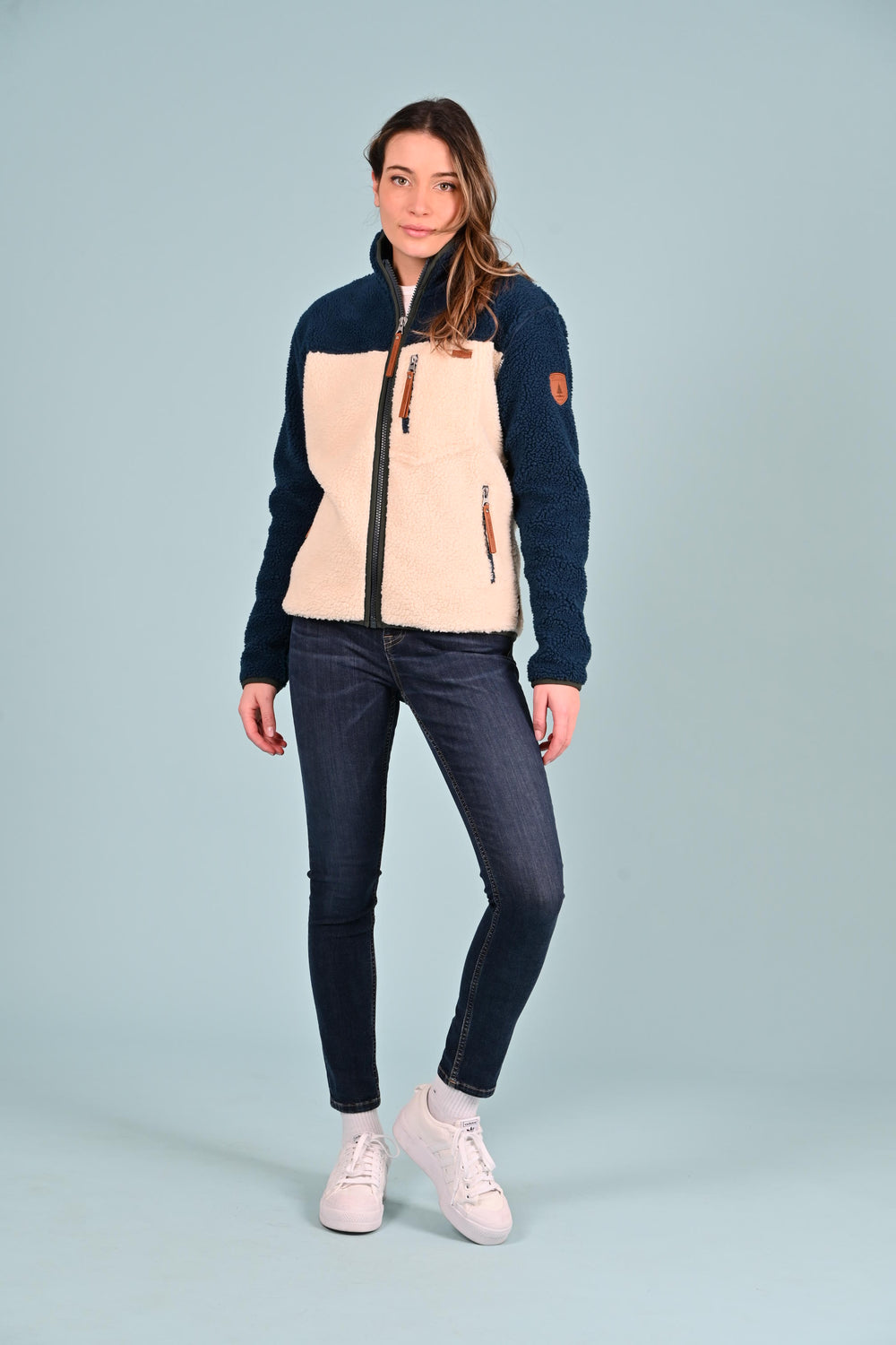 Blaise Full-Zip Sherpa Jacket Ivory Real Teal