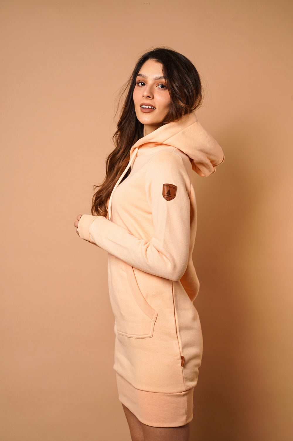 Women's Terry Long Sleeve Hoodie Dress in Peach