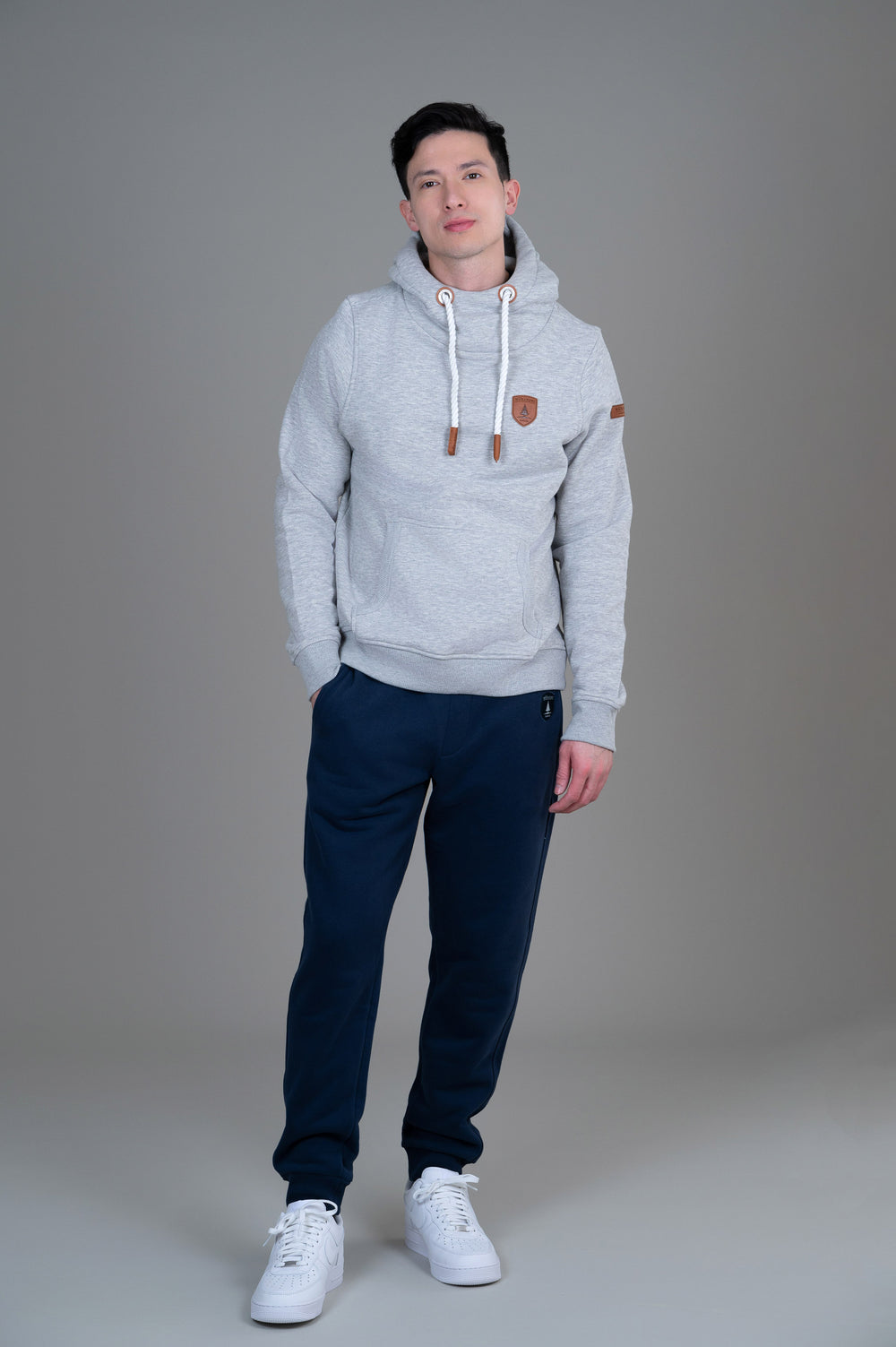 • Hood with adjustable rope drawstrings and vegan leather caps