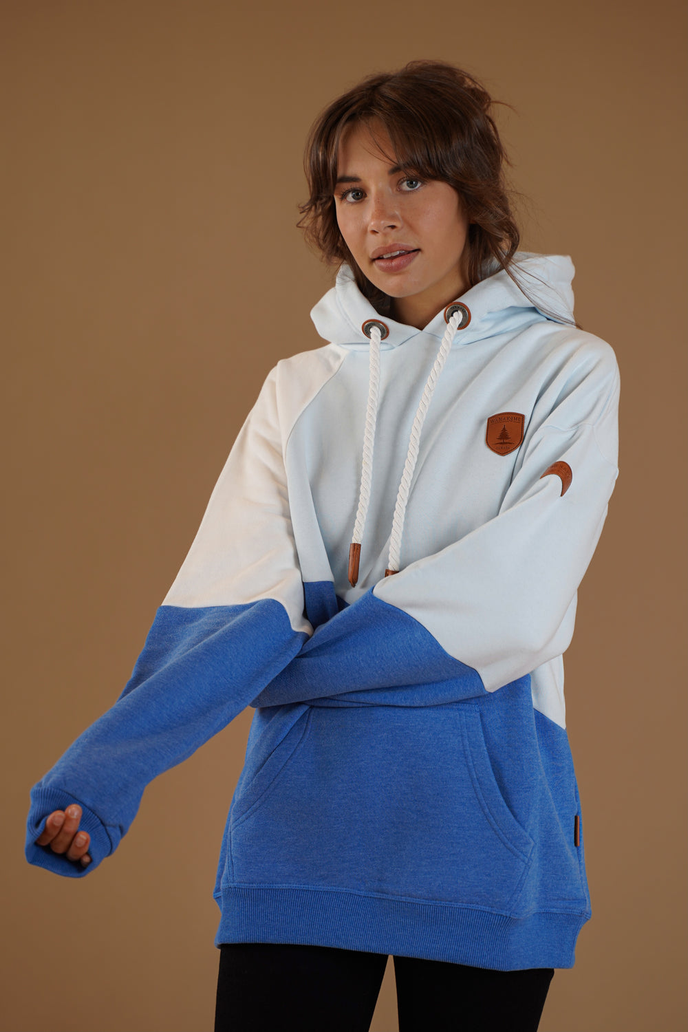 Women's Oversized Pullover Terry Hoodie in Royal Blue/Sky Blue