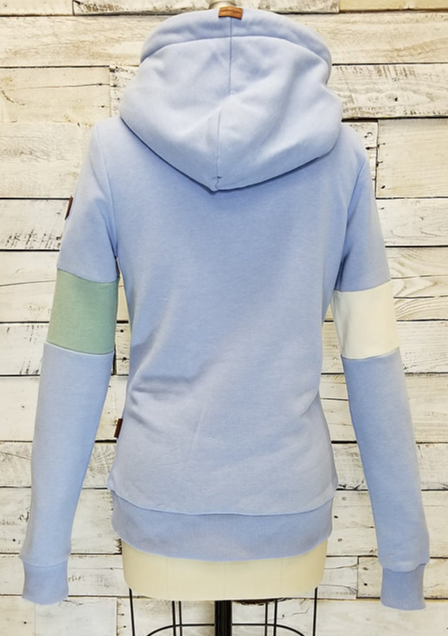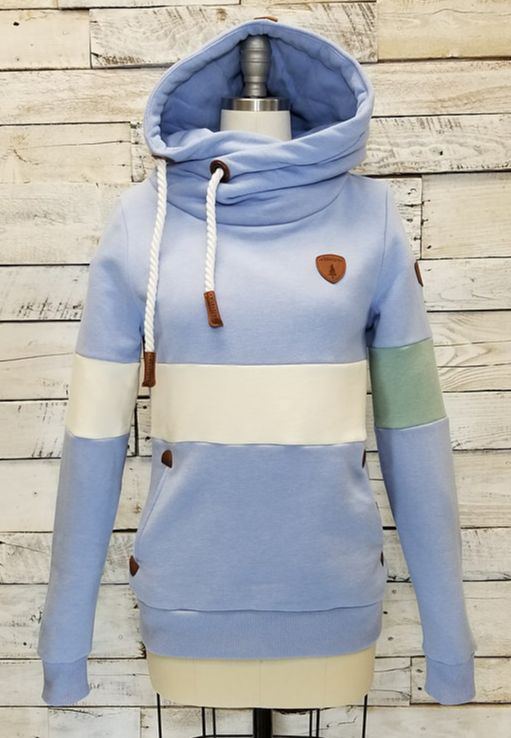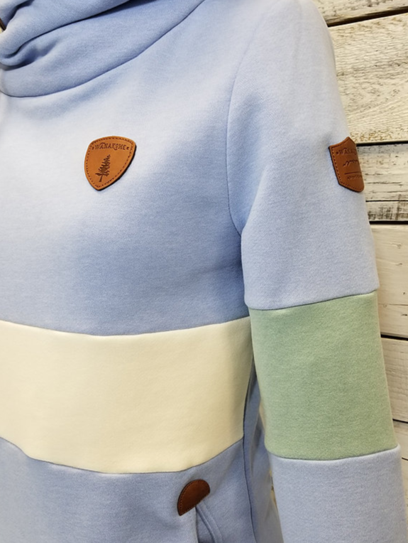 Women's Terry Pullover Side-Blocked Hoodie in Baby Blue Jay/Oatmeal/Green Bay
