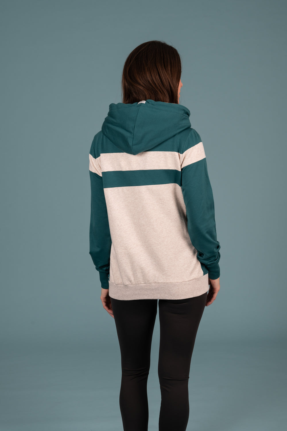 Women's Lux Fleece Color Block Pullover Hoodie in Teal Mix