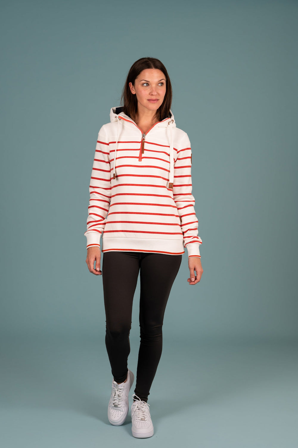 Women's Edwina Striped Hoodie in Sanguine and Ivory