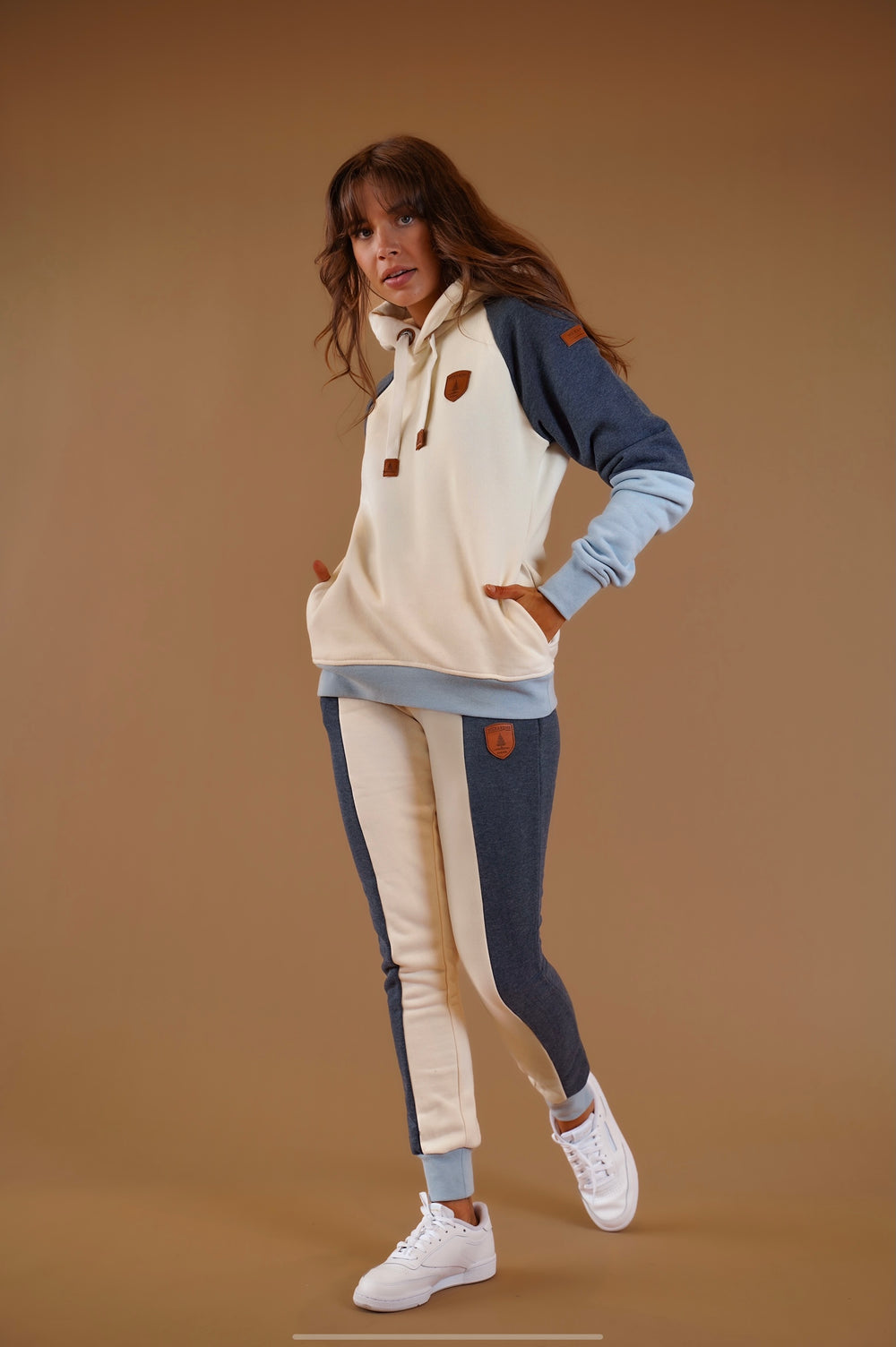 Color-blocked Pullover Hoodie in Navy/Oatmeal