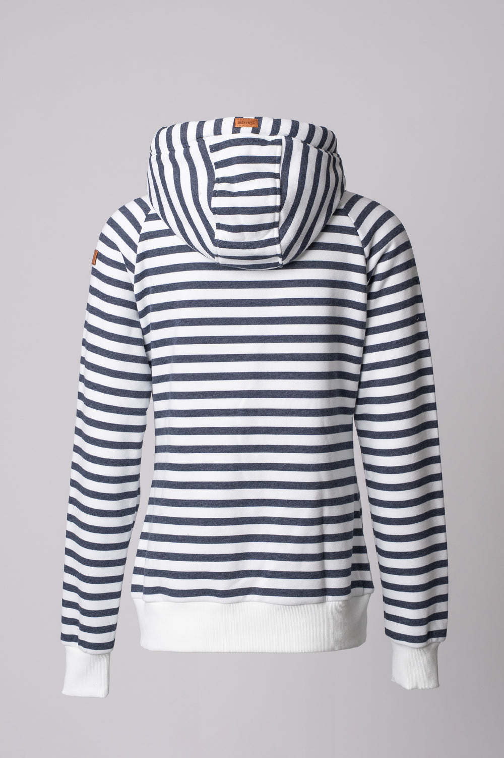 • Hood with adjustable rope drawstrings and vegan leather caps
