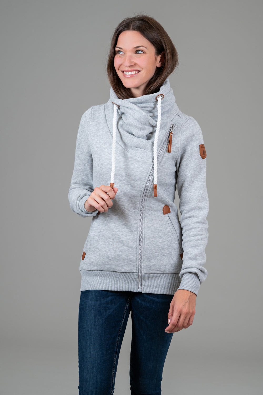 • Hood with adjustable rope drawstrings and vegan leather caps