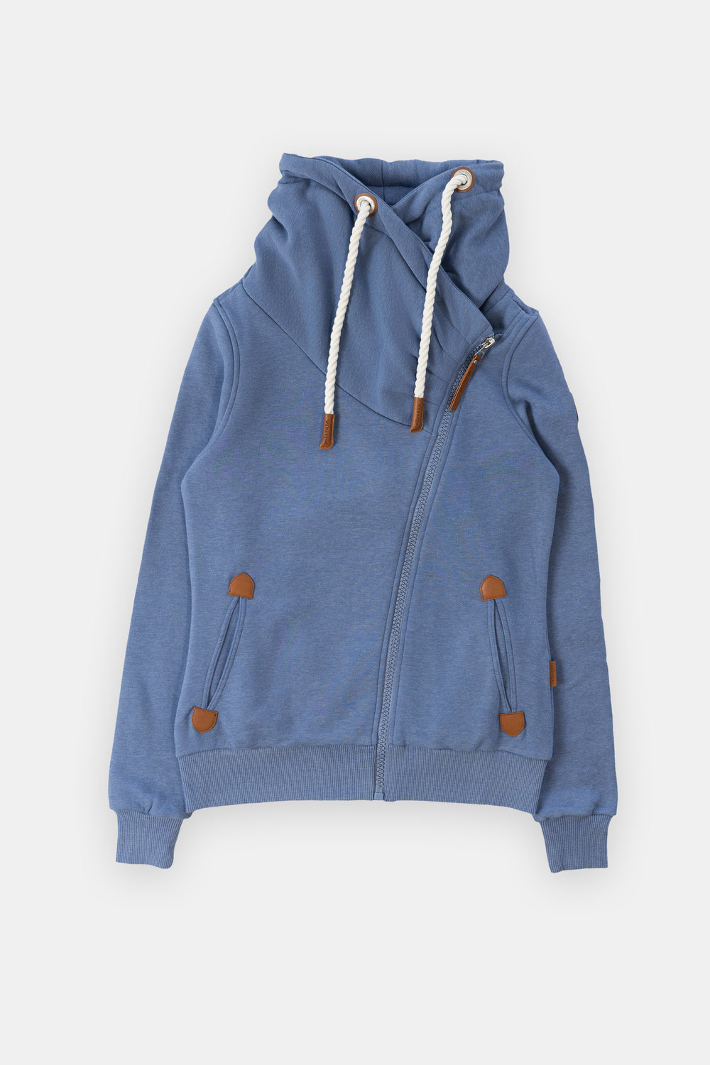 Women's Terry Side Zip Cowl Neck in Mineral Blue