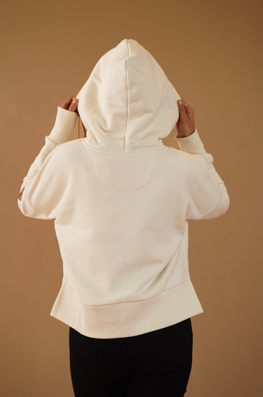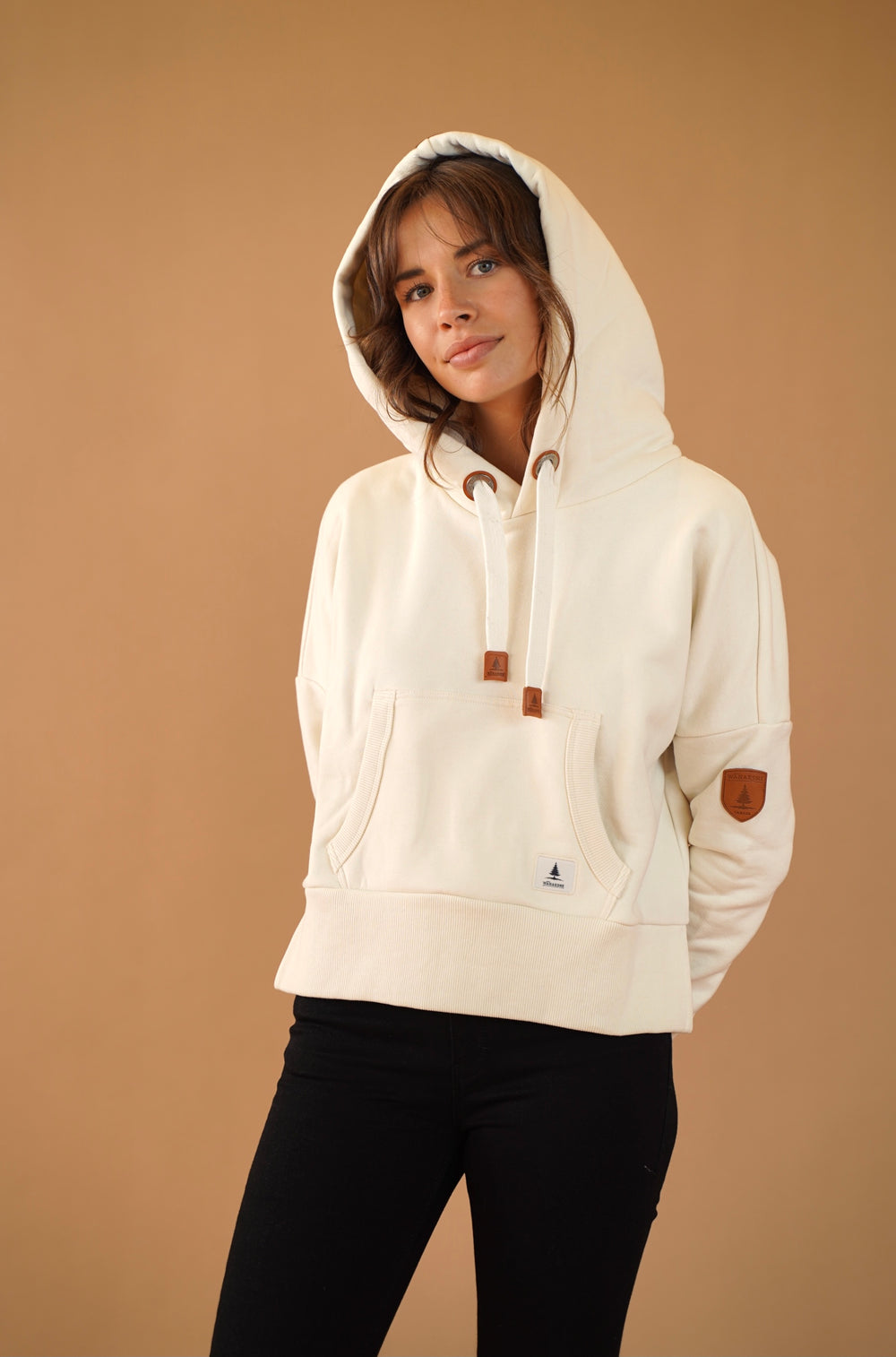 Women's Slouchy Cropped Pullover Hoodie in Oatmeal