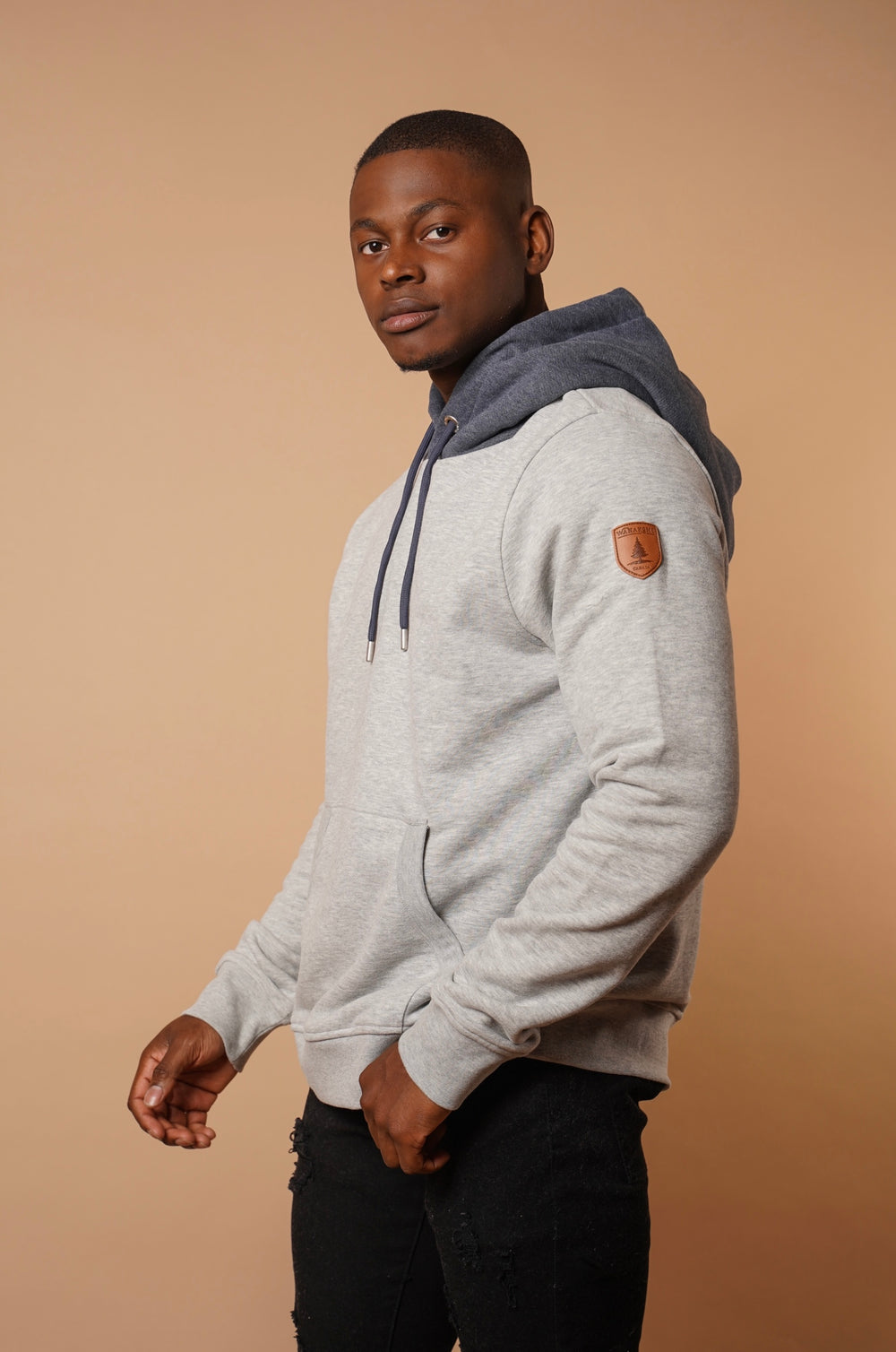 Men's Pullover Hoodie in Light Heather Grey with Contrast Color Hood