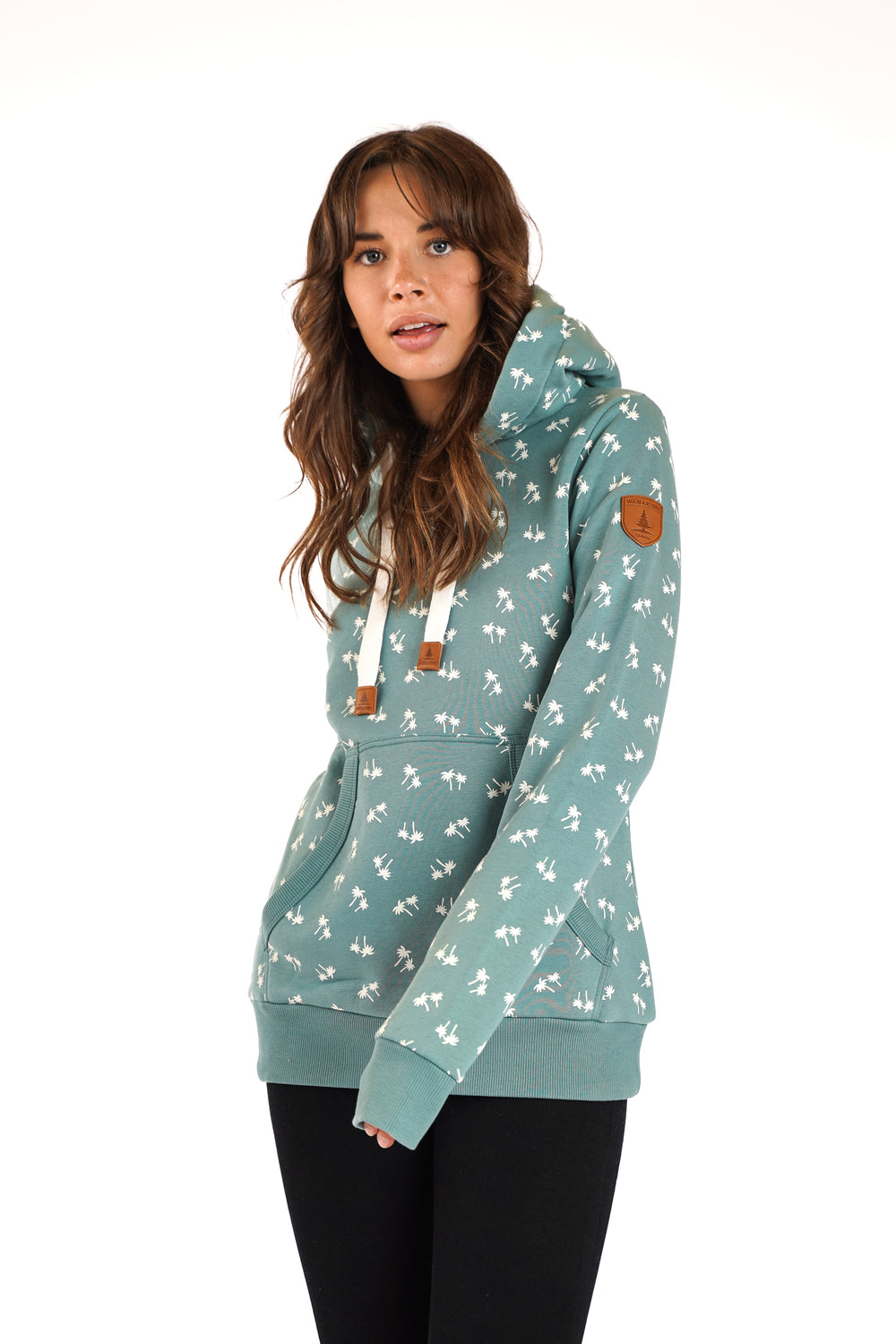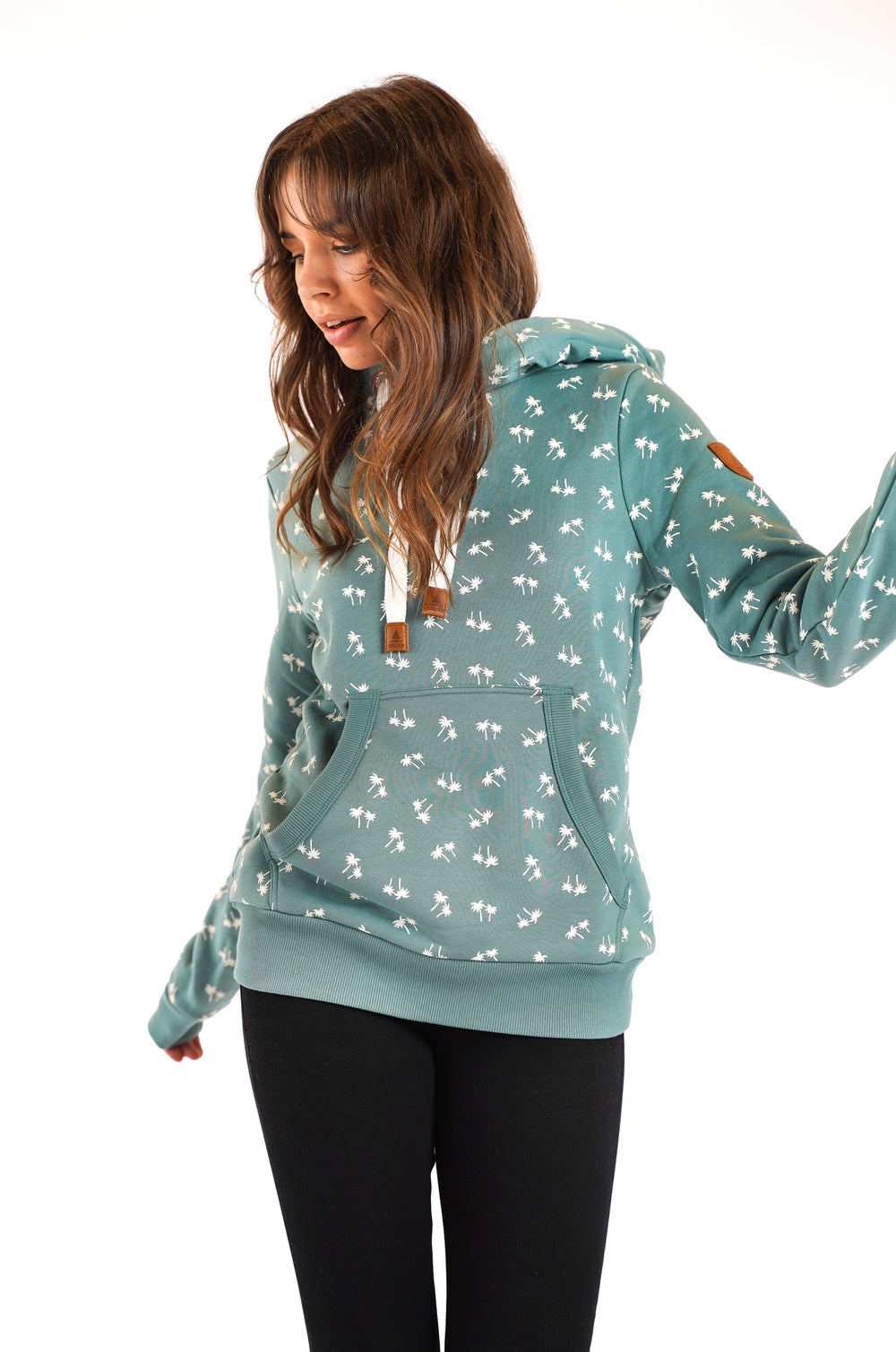 Women's Mini Palm Tree Print Pullover Hoodie In Sage