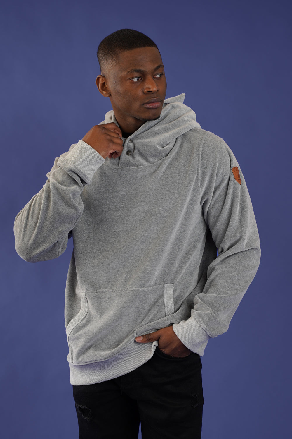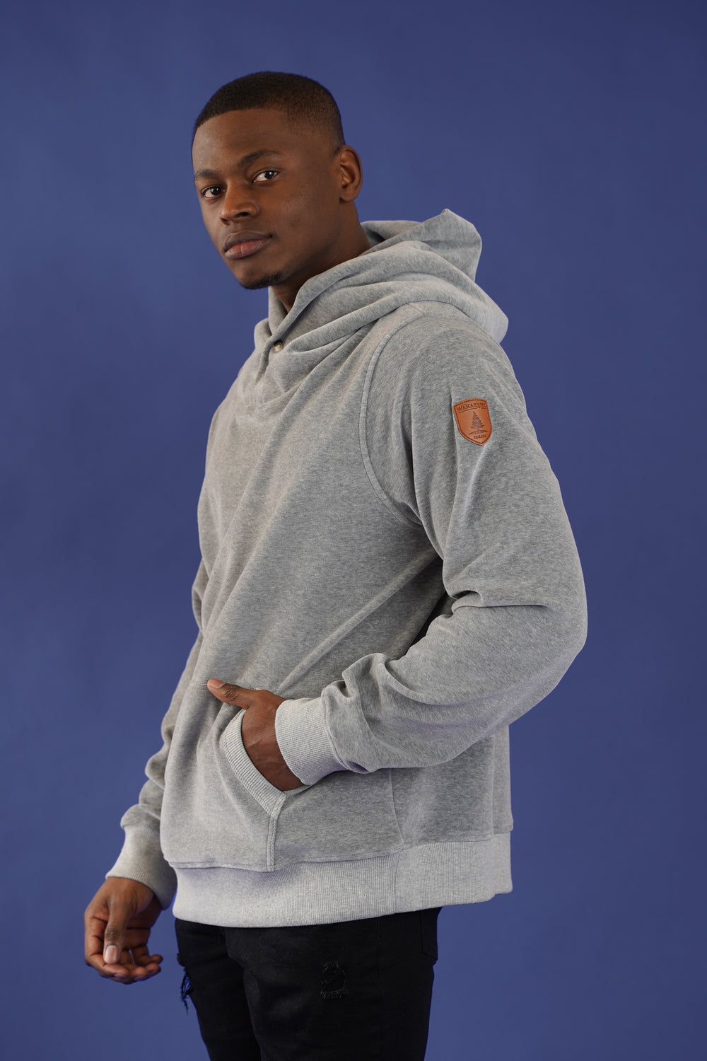 Men's Pullover Terry Hoodie with Kangaroo Pocket in Light Heather Grey