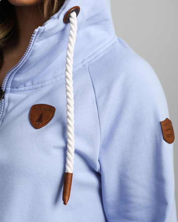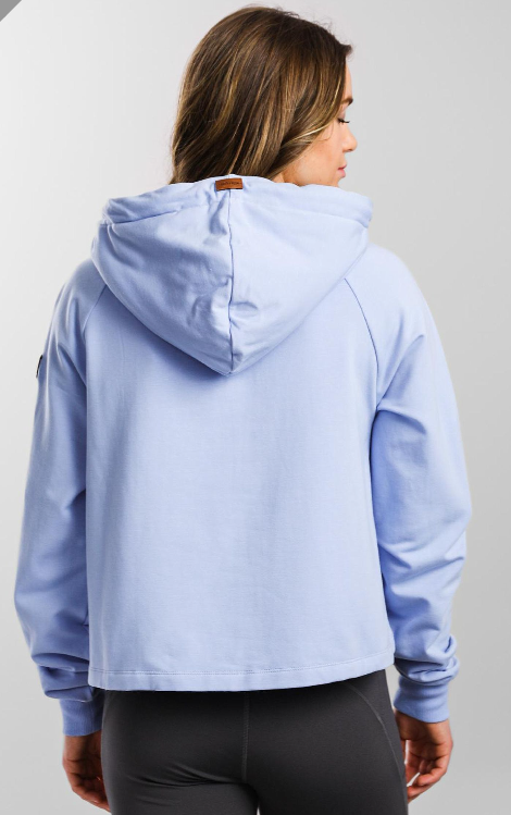 Women's Lux Crop Pullover with Half Zip Hoodie in Baby Blue Jay