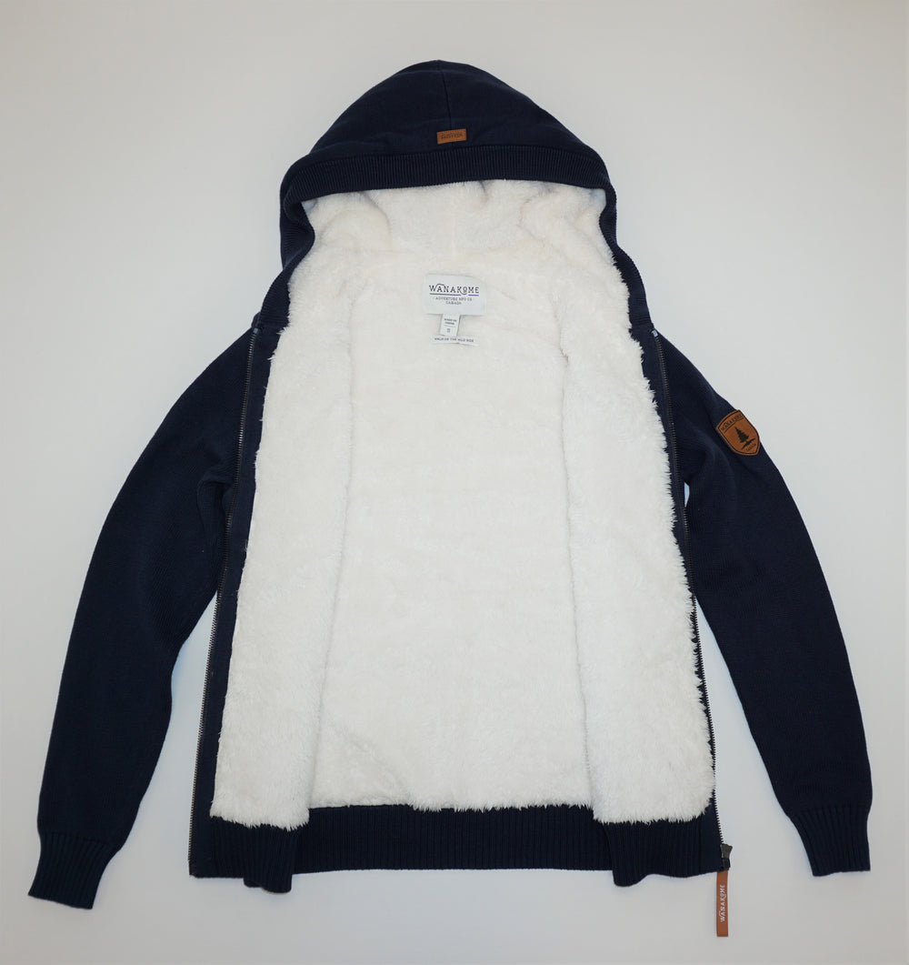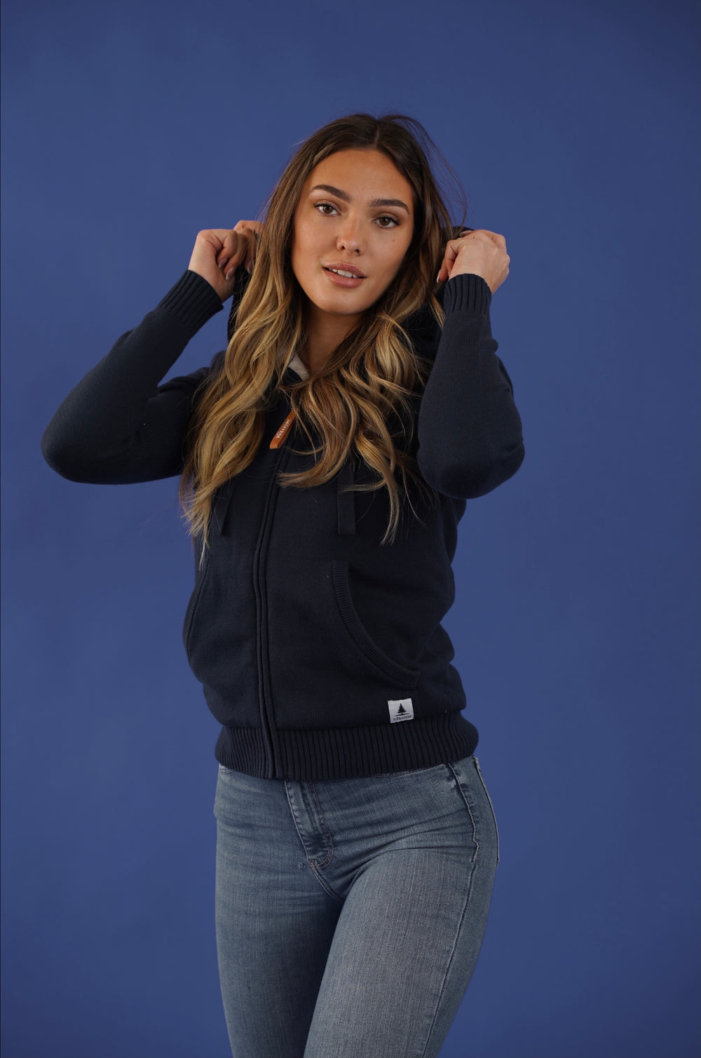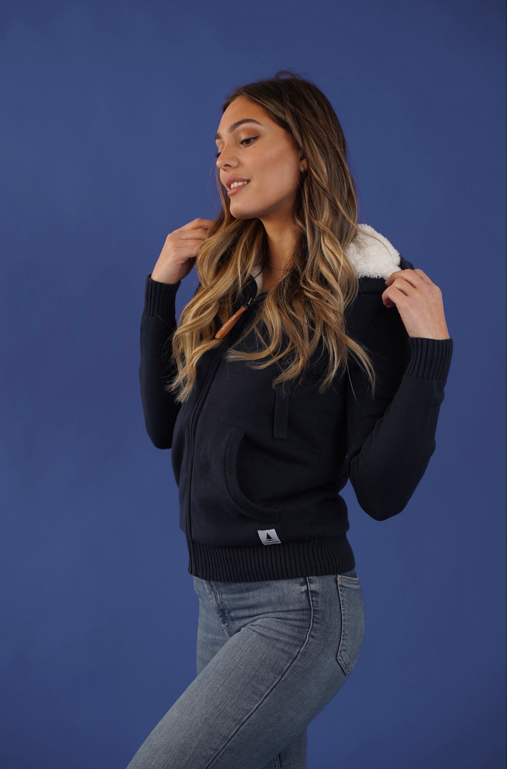 Women's Faux Fur Lined Front Zip Hoodie in Navy