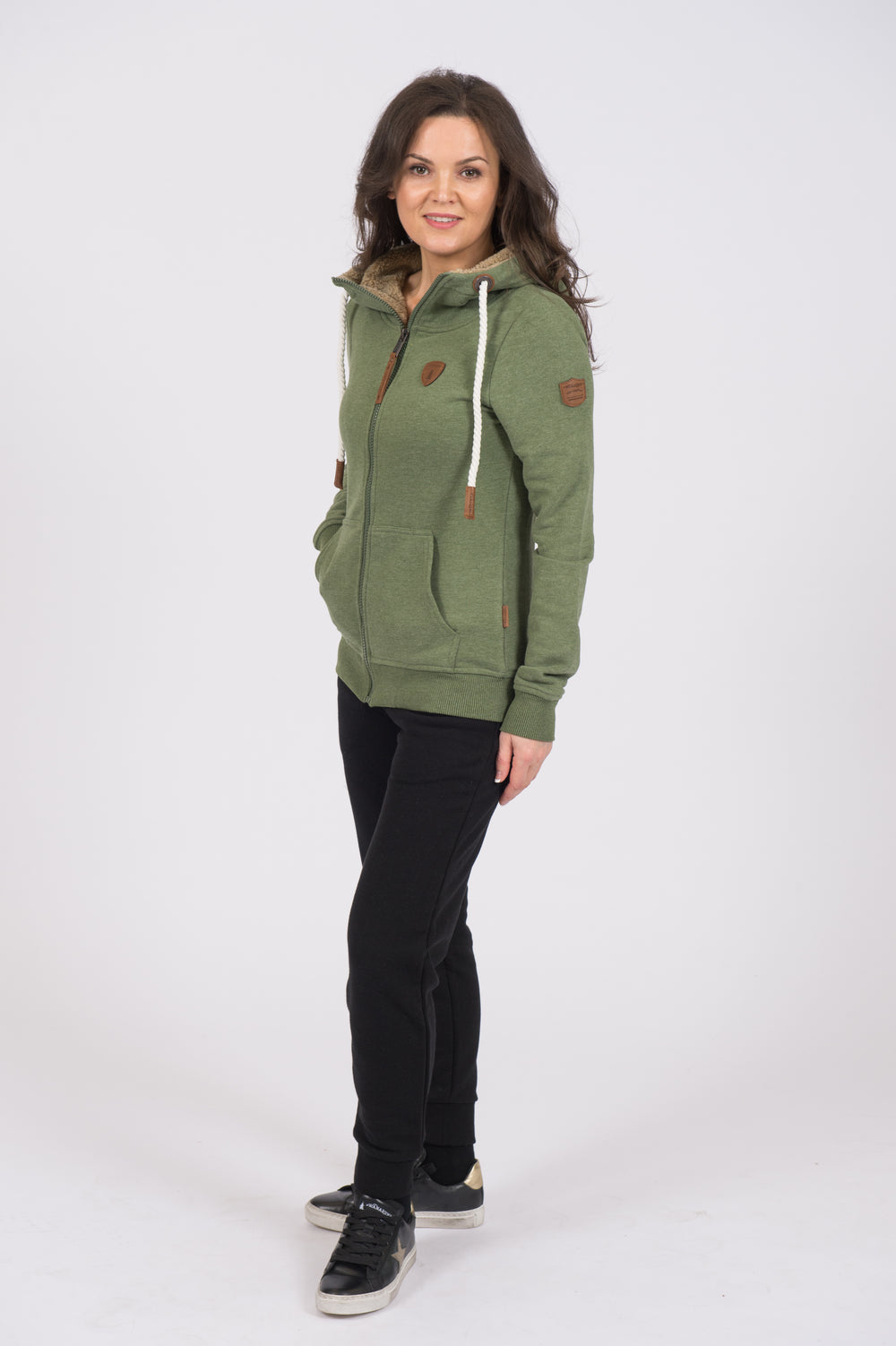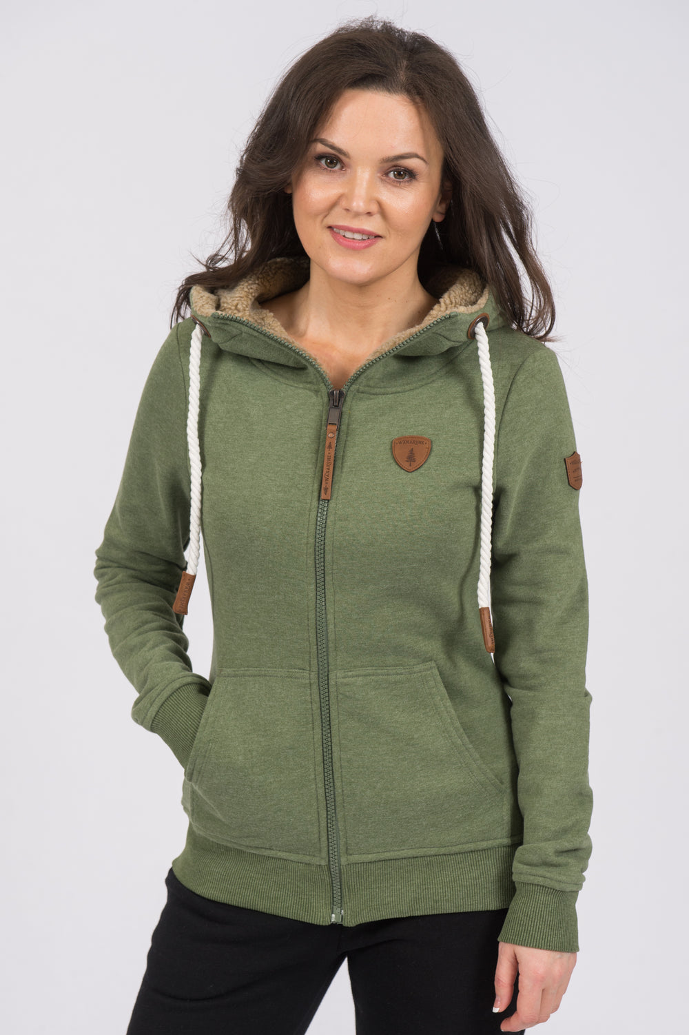 Women's Front Zip Terry Hoodie with Sherpa Lined Hood in Chive