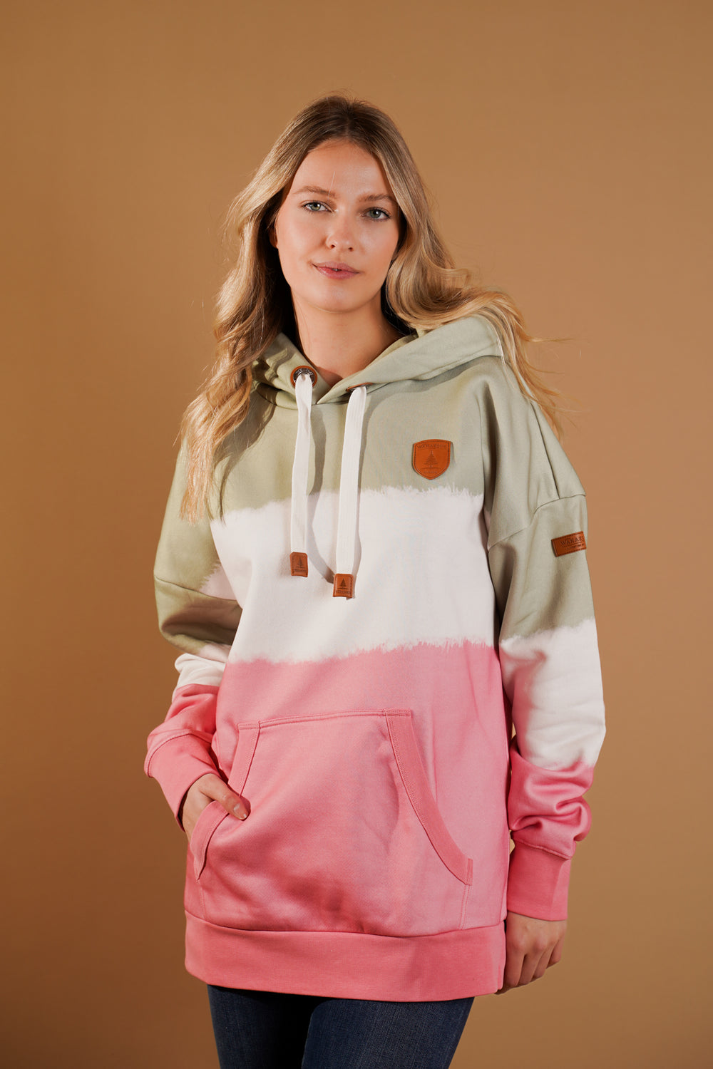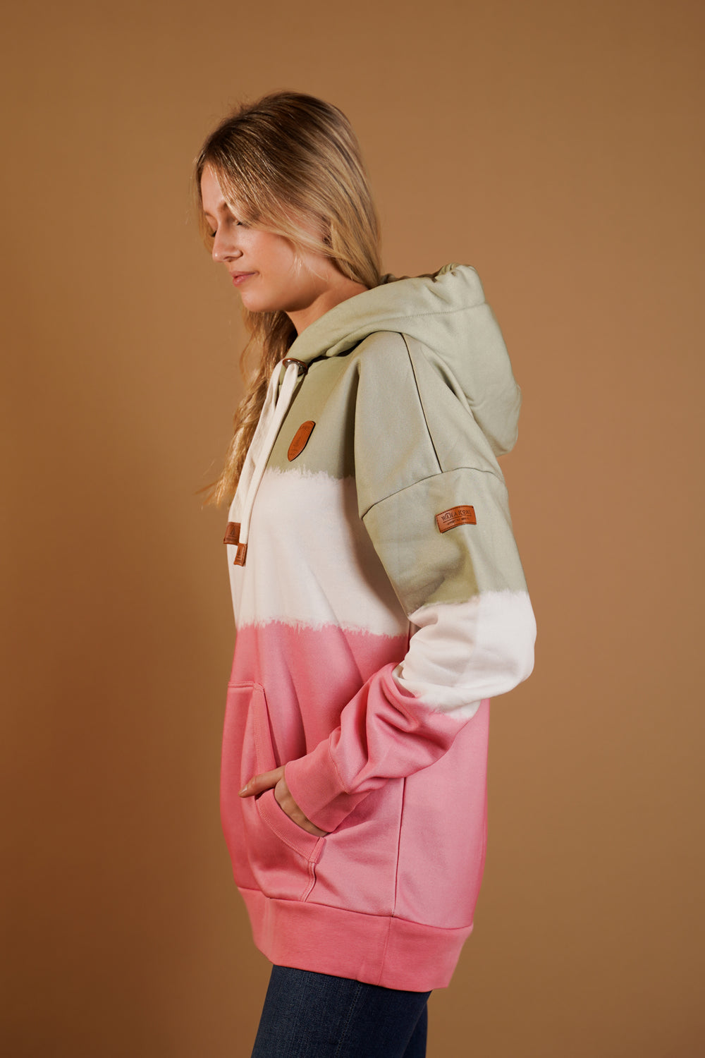 Women's Dip Dye Pullover Terry Hoodie in Aloe/Blush Dip Dye