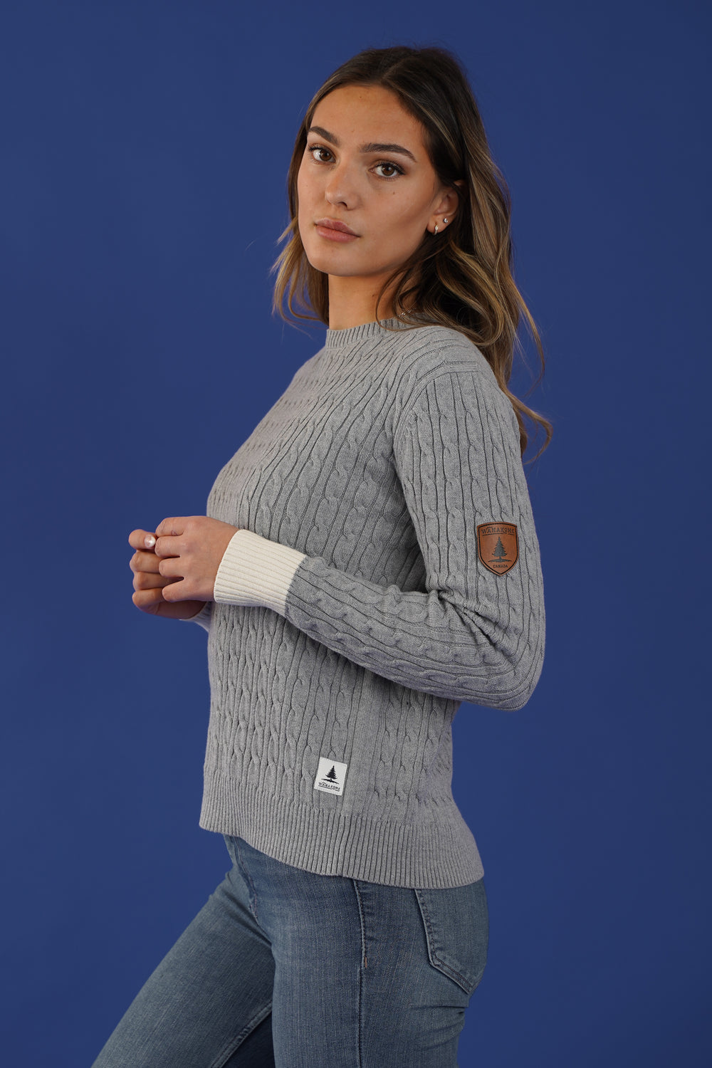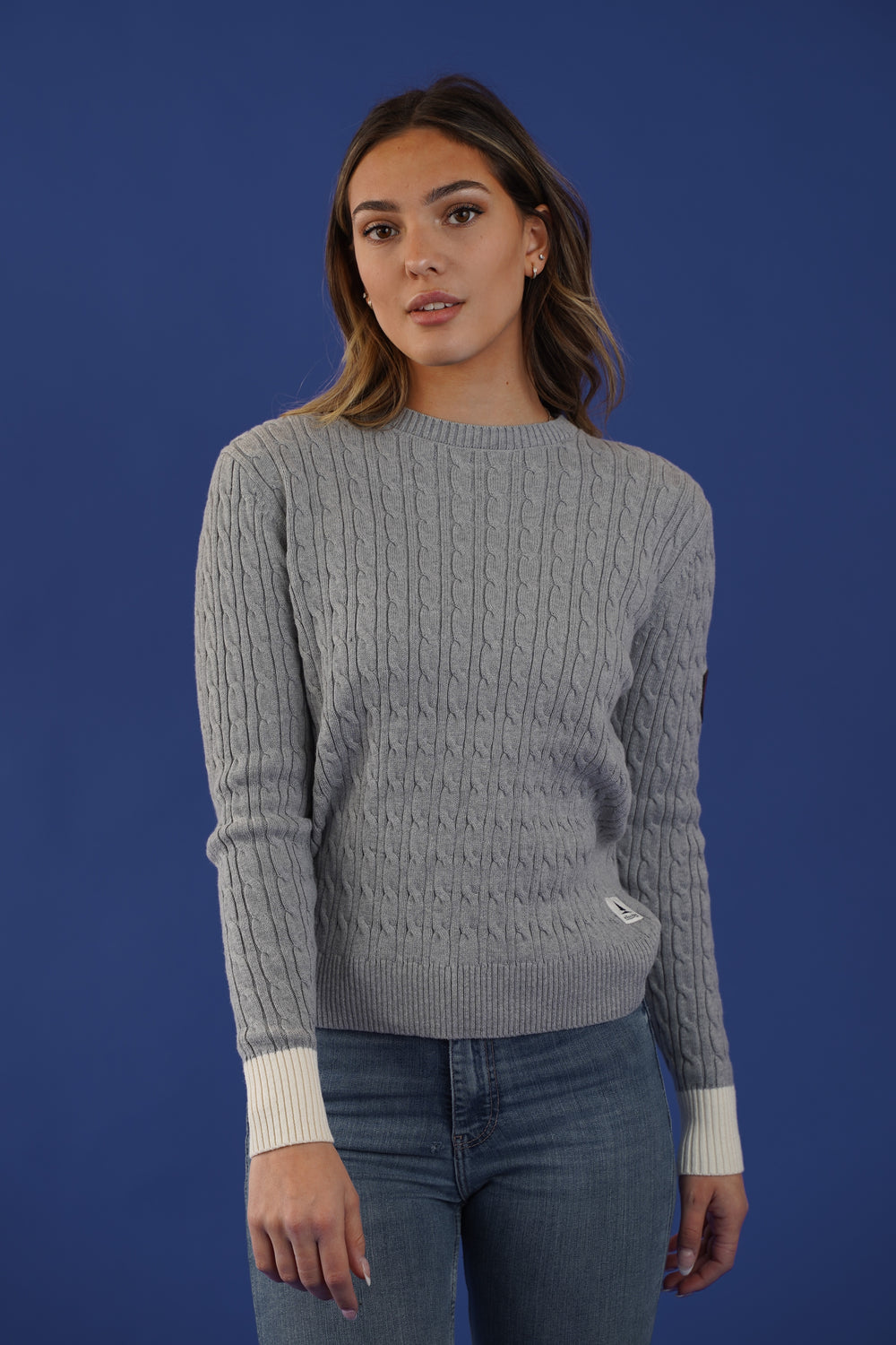 Women's Cable Knit Sweater in Light Heather Grey
