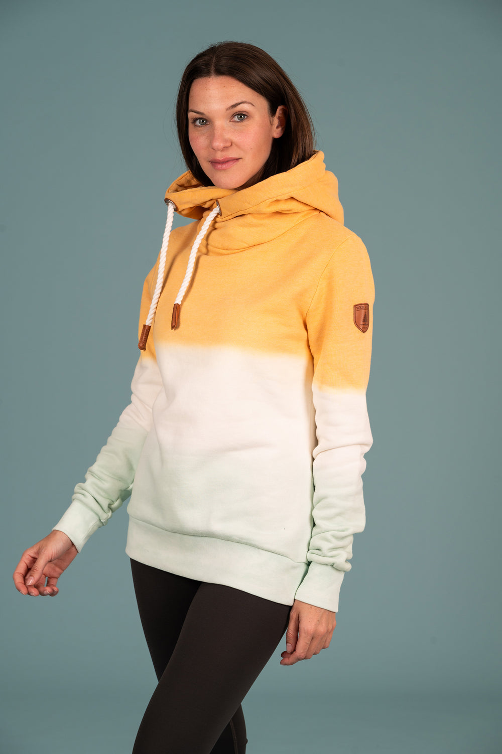 • Adjustable hood with rope drawstrings and vegan leather caps