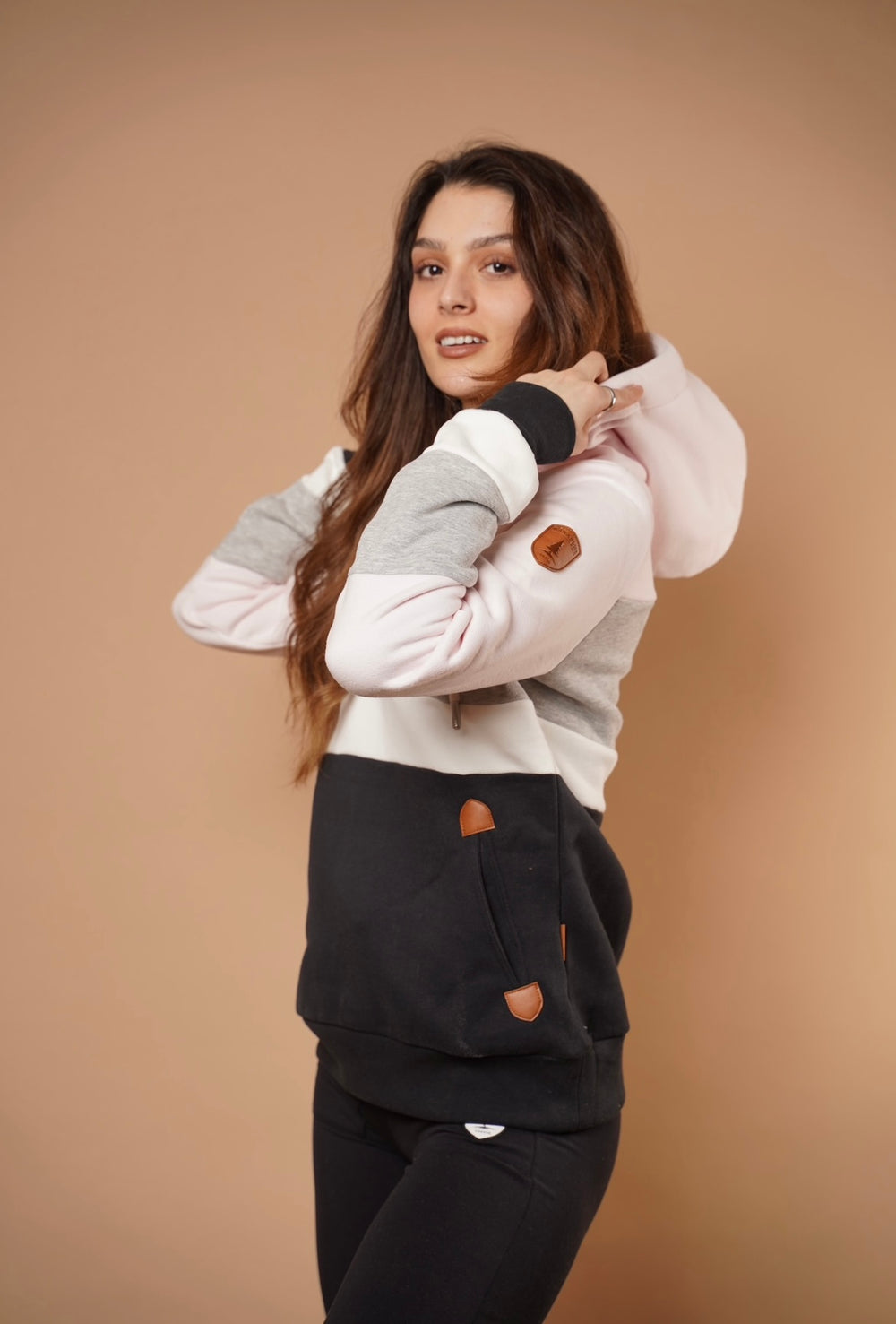 Women's Colorblocked Half Zip Hoodie in Primrose Mix